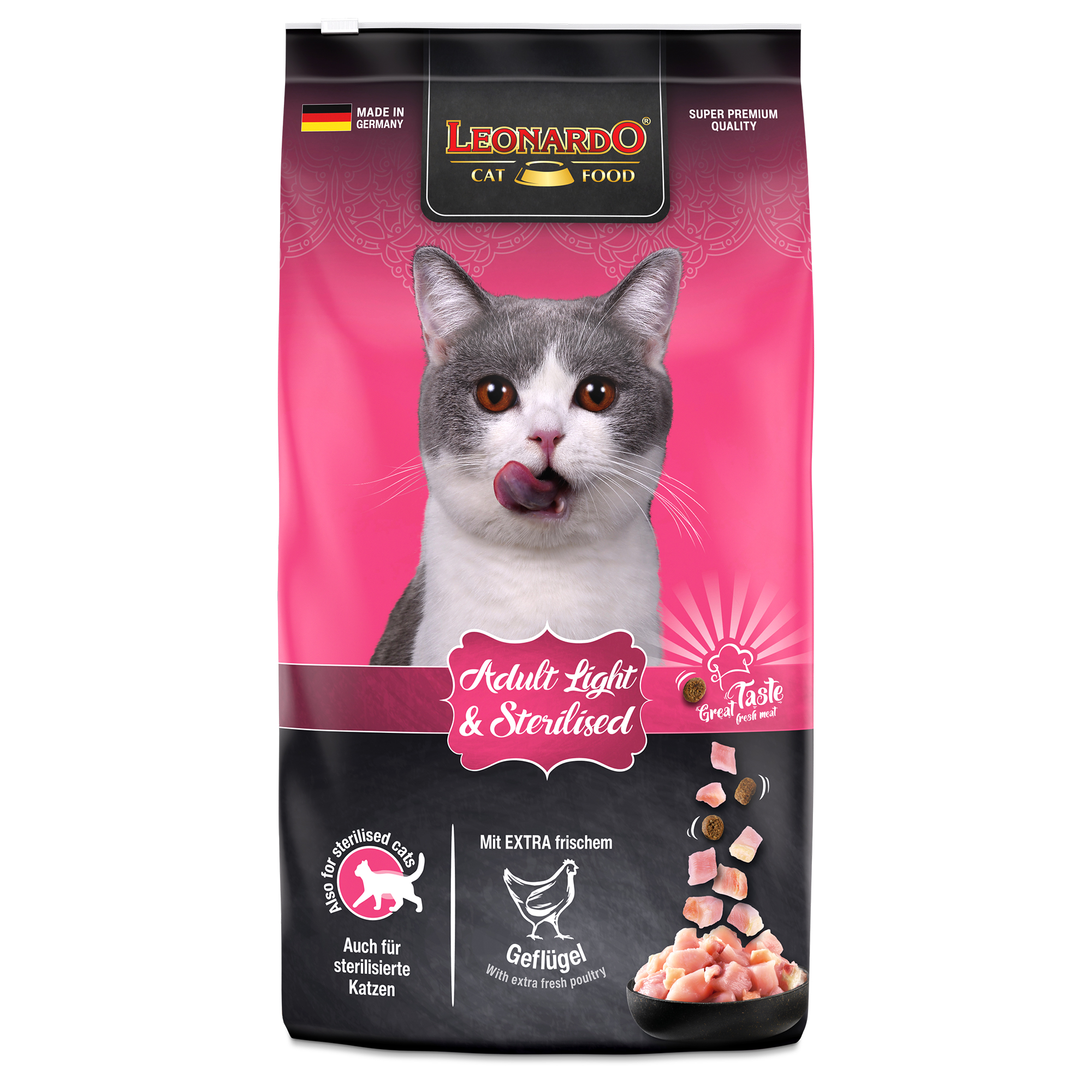 There are many causes of excess weight. Whether it is a consequence of incorrect feeding with too many treats, or due to hormones after castration or sterilisation, in all cases it reduces the vitality of your pet, and dramatically increases the risk of illness. Adjusting your cat’s diet early on by switching to cat food with a lower energy content such as LEONARDO Light makes an important contribution to your cat’s health and helps restore it to peak condition.